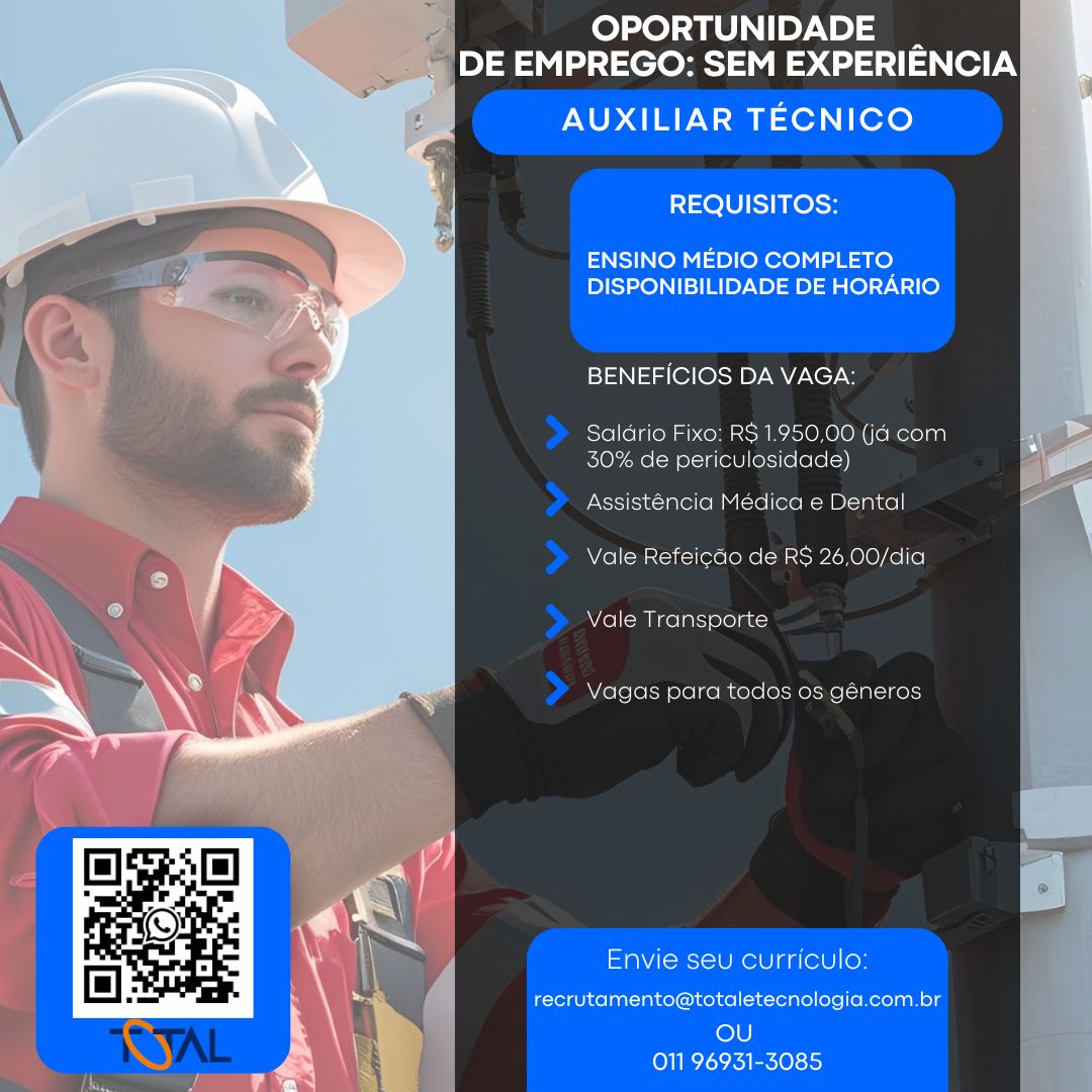 Caso possua interesse na vaga, encaminhe seu currículo via whatsapp 11 96931-3085.